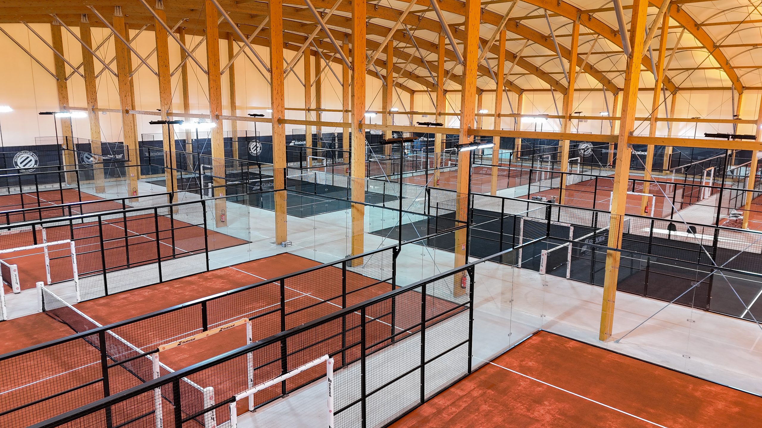 Les terrains, entièrement panoramiques et sans poteaux latéraux, offrent une excellente visibilité et un confort de jeu optimal. L’ensemble du complexe est équipé de matériel Babolat haut de gamme, avec un éclairage performant et homogène.